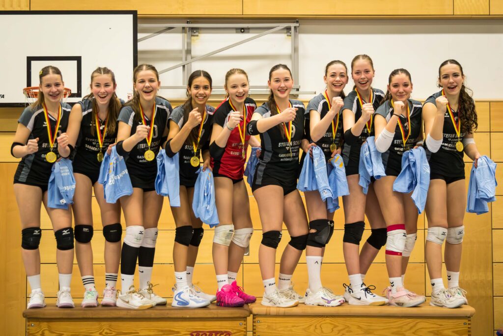 Was gibt es schöneres als strahlende Gesichter mit einer Goldmedaille um den Hals? Und auch wenn es in den Köpfen für so manche Spielerin „nur“ eine Durchgangsstation zur Regionalmeisterschaft war, darf man den Gewinn der nordbadischen Meisterschaft dennoch gebührend feiern. Gratulation an Amara, Anna, Annabel (C), Chrissie, Dunja, Eva, Kaja, Marie, Mariella, Selina und Vanessa sowie Trainerin Amelie und Co-Trainer Sönke. Wir sind stolz auf euch!